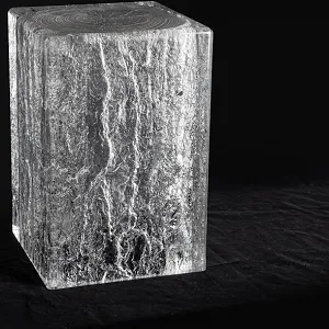 La Glacier Stool Table est une pièce hybride, à la fois tabouret et table d’appoint. Son design s’inspire directement d’un bloc de glace stylisé, dont les facettes et la translucidité créent un effet gelé très graphique.