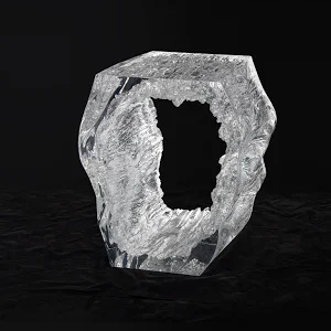 La Ice Cave Side Table adopte une forme plus sculpturale. Elle évoque une petite cavité de glace ou un fragment d’iceberg abstrait, avec des volumes irréguliers qui captent la lumière comme le ferait une surface gelée.